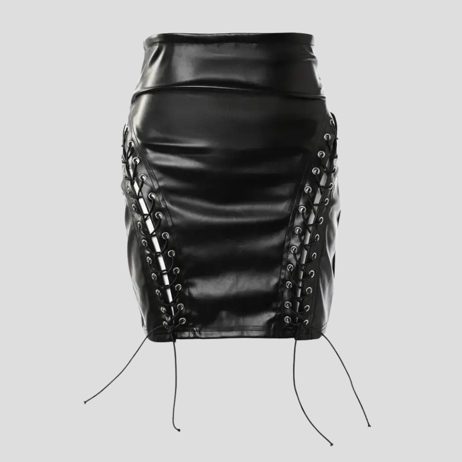 Spódnica Gotycka Skórzana Czarna Sznurowanie Krótka Dopasowana