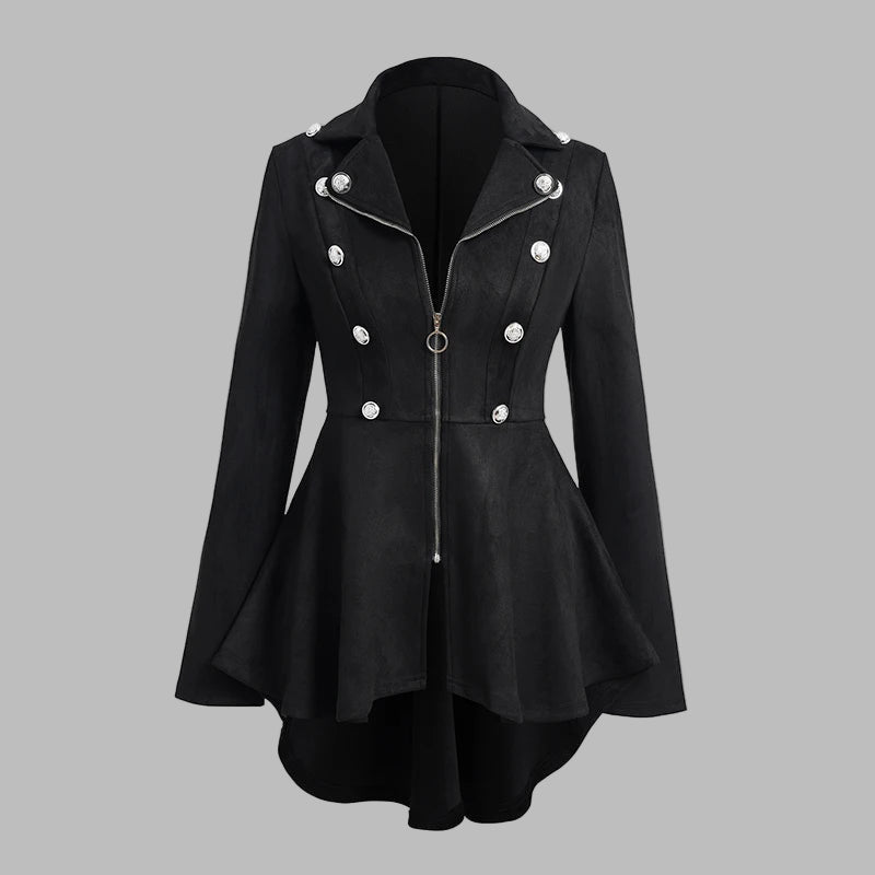 Svart gotisk utsvängd damkappa med knappar och dragkedja