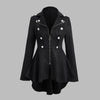 Svart gotisk damkappa med klockad design, knappar och dragkedja