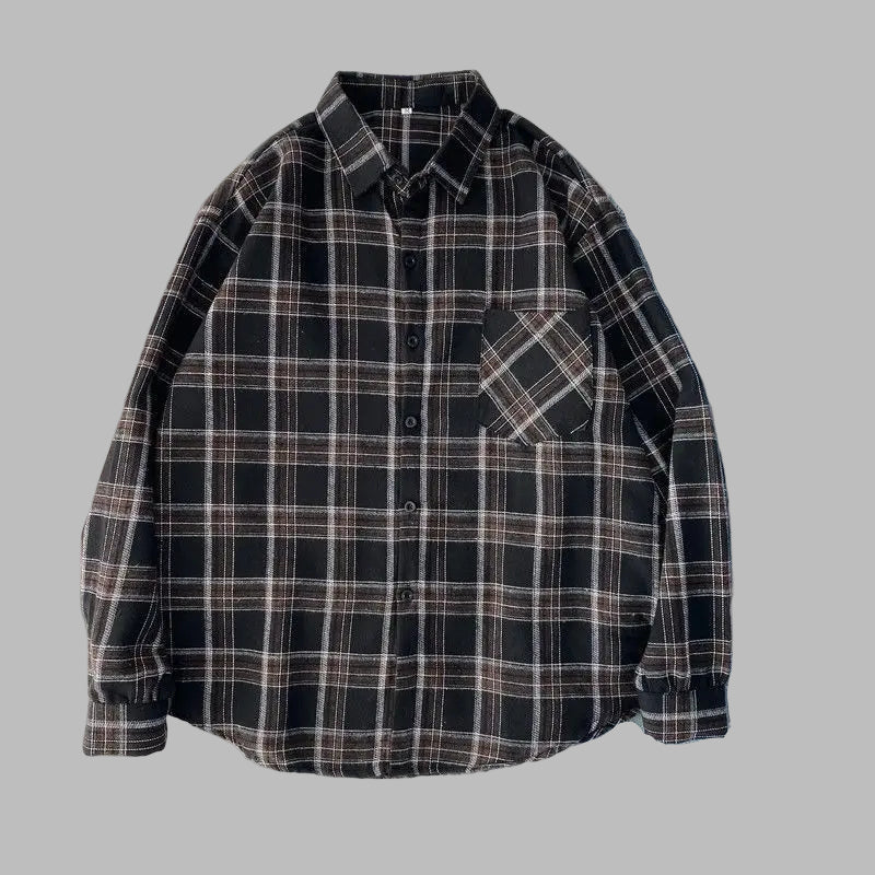 Svart Grunge Punk Skjorta med Rutigt Mönster och Långa Ärmar