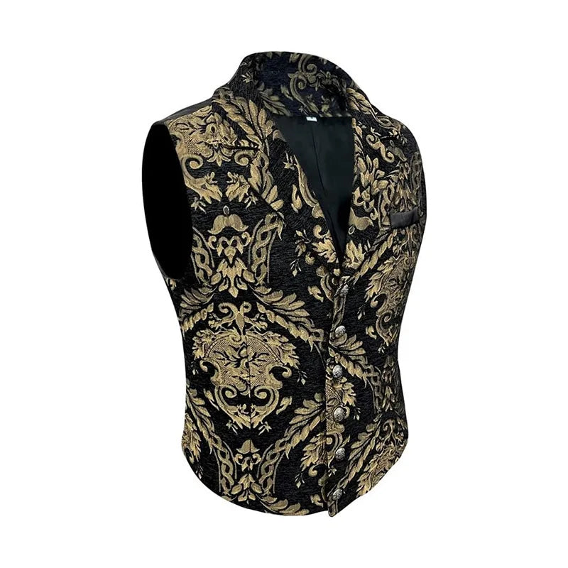 Svart Herrväst i Steampunkstil med Barockmönster
