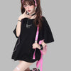 Jirai Kei tröja med snörning på ryggen och rosa band Svart
