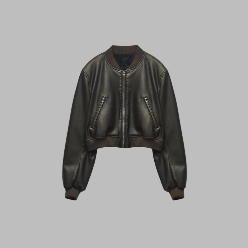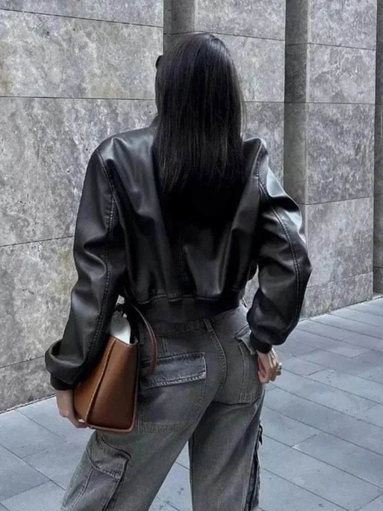 Svart Kort Rock Goth Läderjacka med Dragkedjor Dam