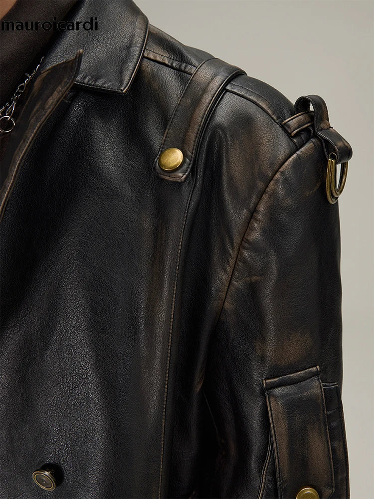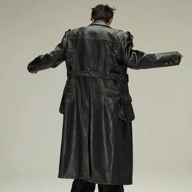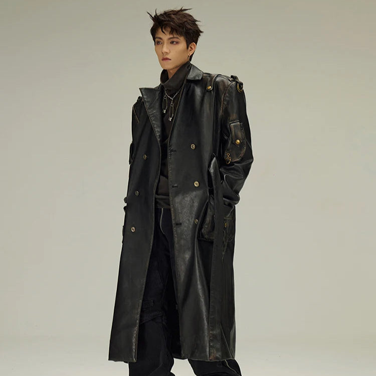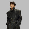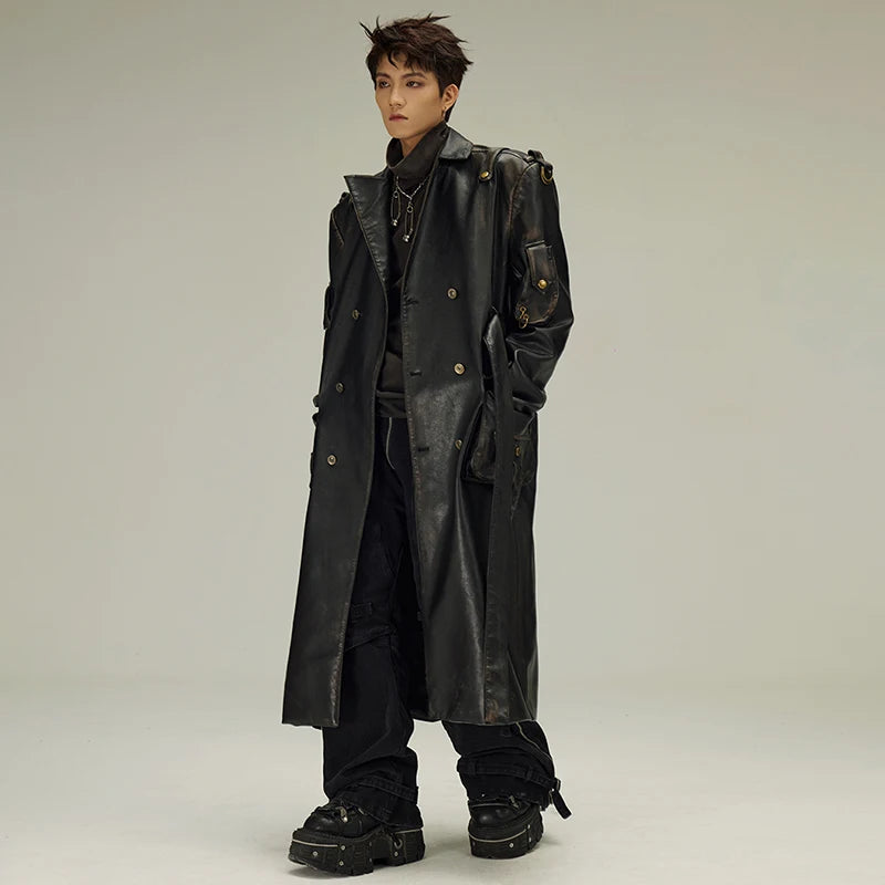 Svart Lång Läderrock i Gotisk Alternativ Stil
