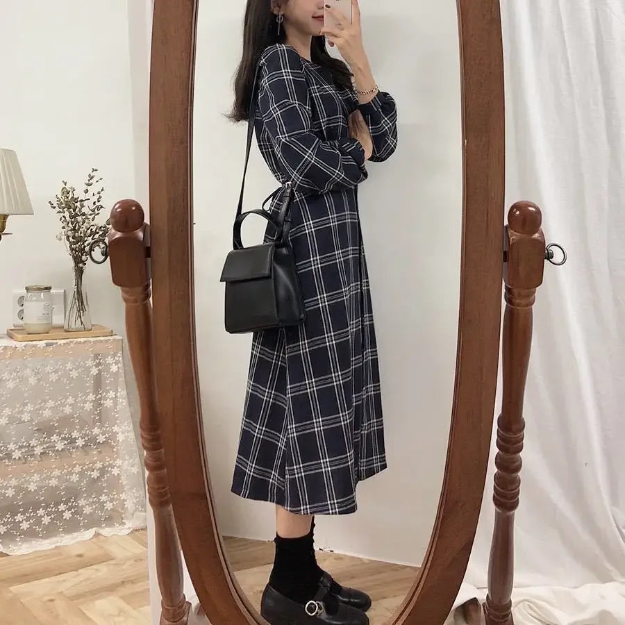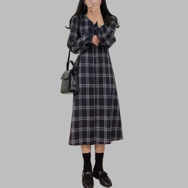 Svart lång punkklänning med rutor och ärmar Visa alternativ