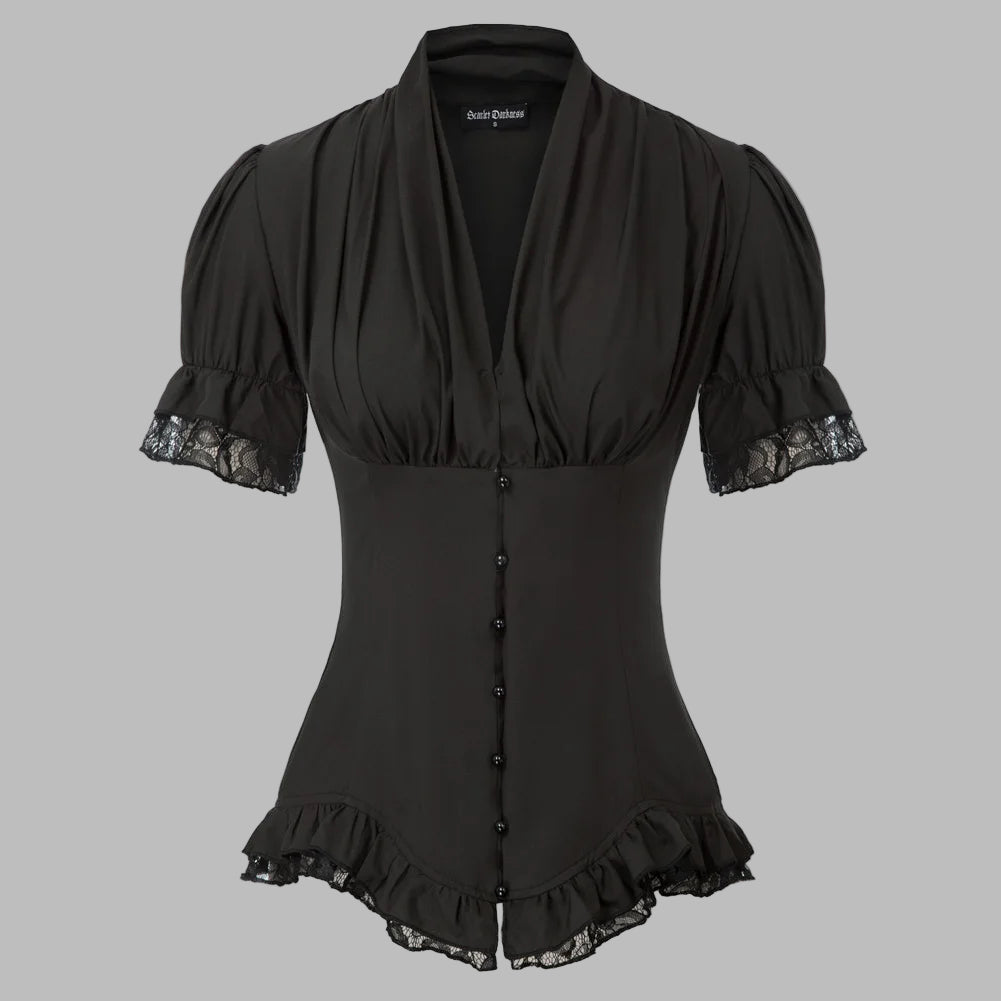 Svart Metal Blus med Spets och Kort Ärm Visa alternativ
