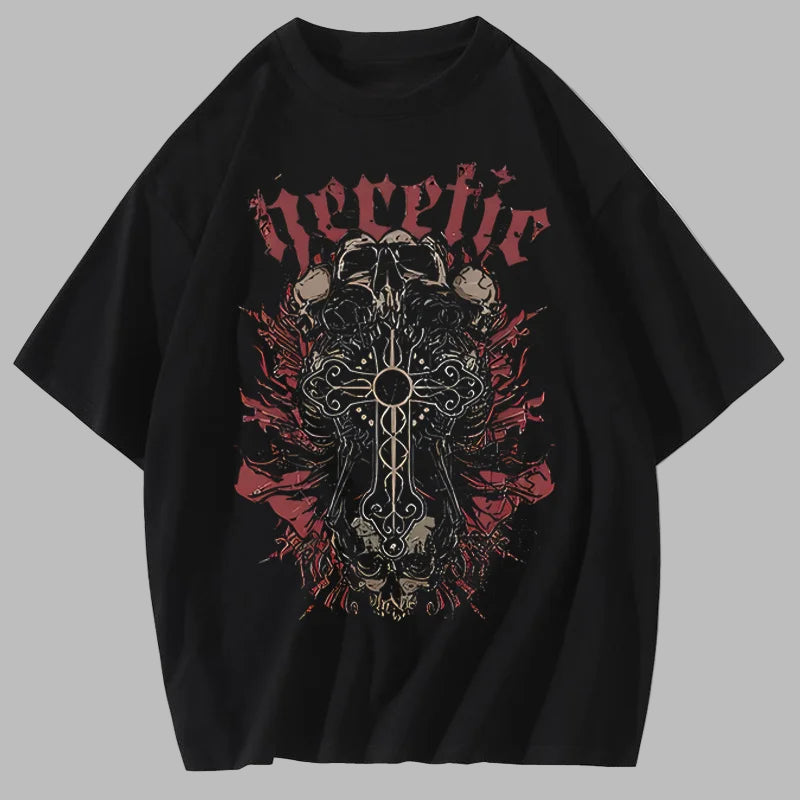 Svart Metal T-shirt med Kors och Dödskallar Visa alternativ