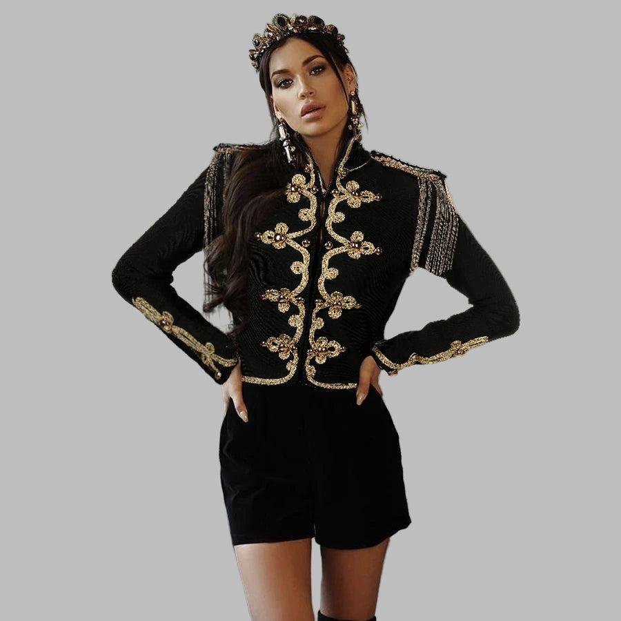 Svart militär kavaj med guld broderier dam vintage steampunk