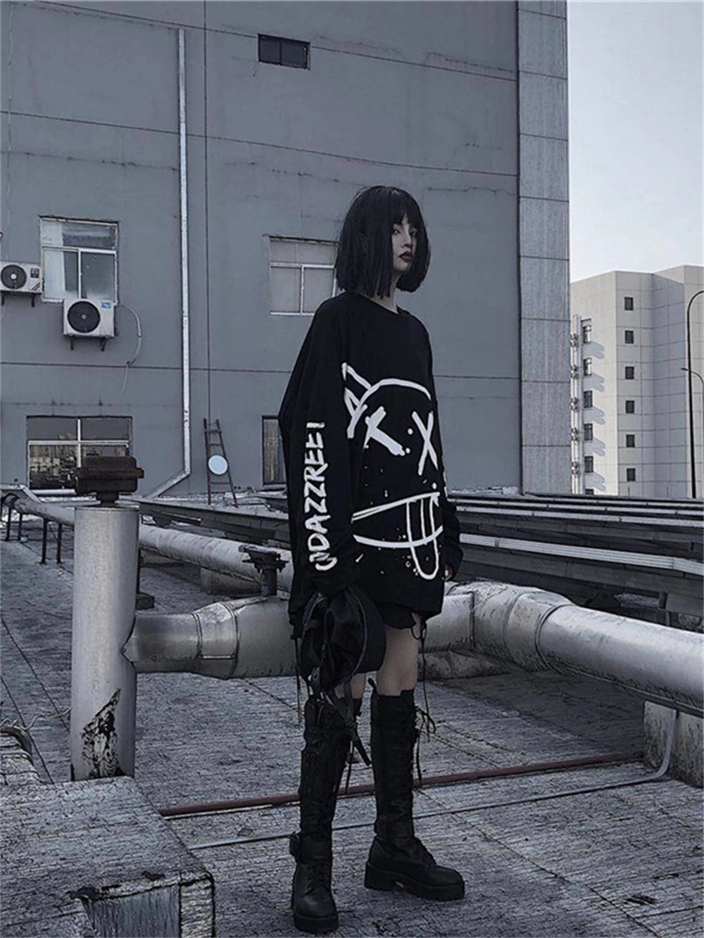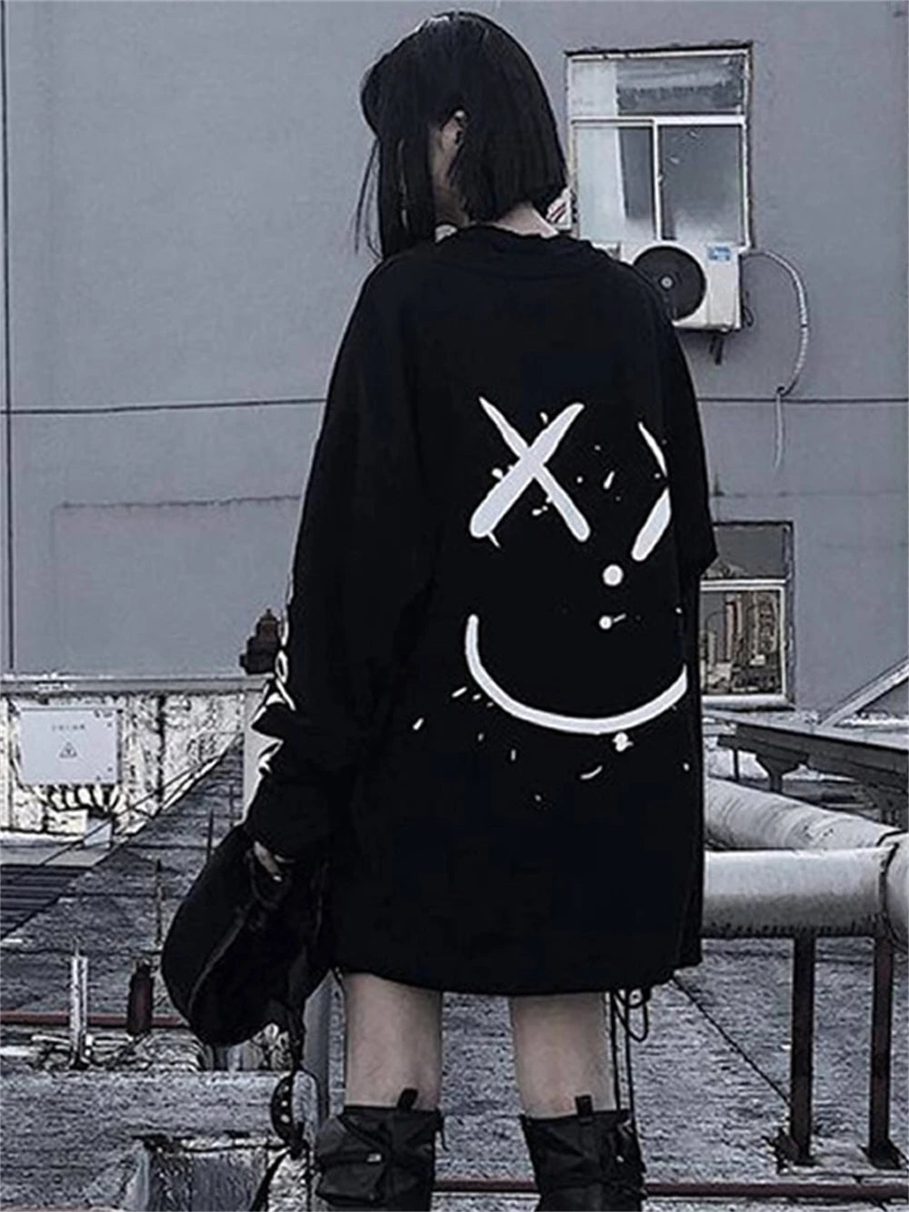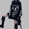 Svart Punktröja med Vitt Ansiktstryck Oversize XXL