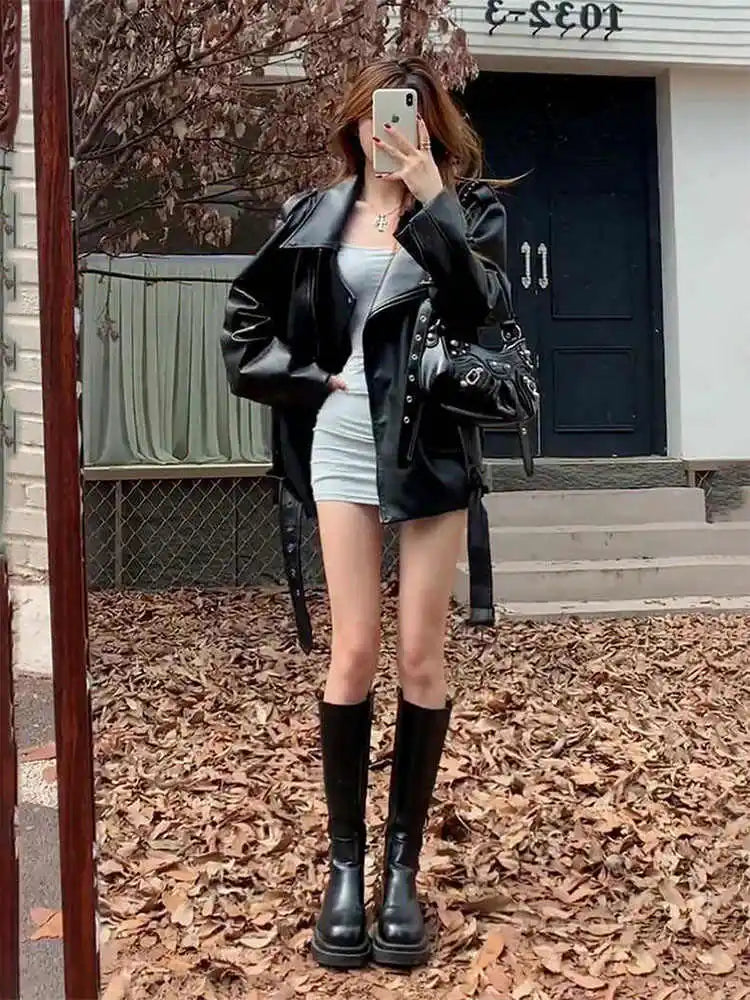 Svart oversize skinnjacka goth punk metal bikerjacka