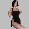 Svart Punk Rock Halter Miniklänning med Spännen