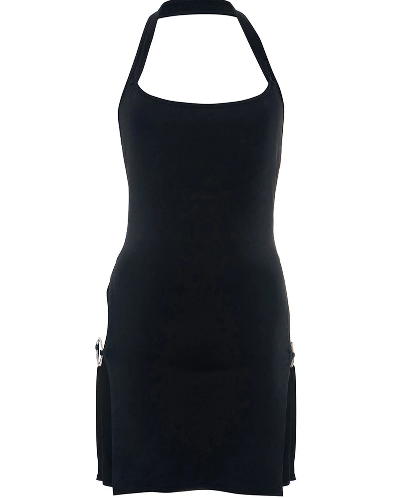 Svart punkrock halterneck miniklänning med spännen