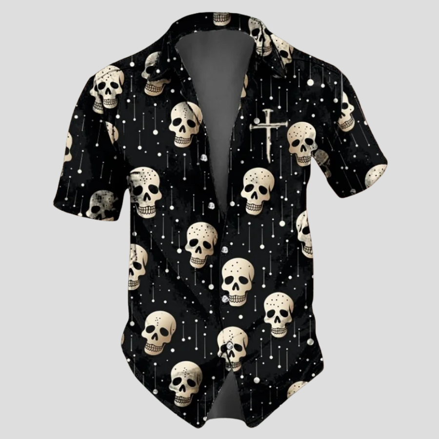 Svart Punk Skjorta med Skallar och Kors Kort Ärm Visa alternativ