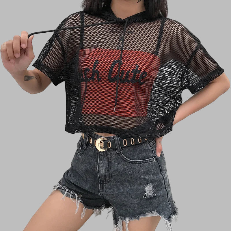 Svart Punk T-shirt med Nät och Huva