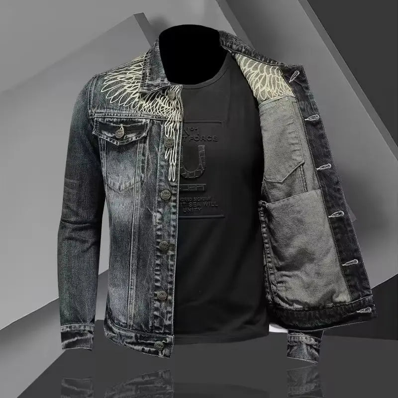 Svart punkig grunge jeansjacka i denim Visa alternativ