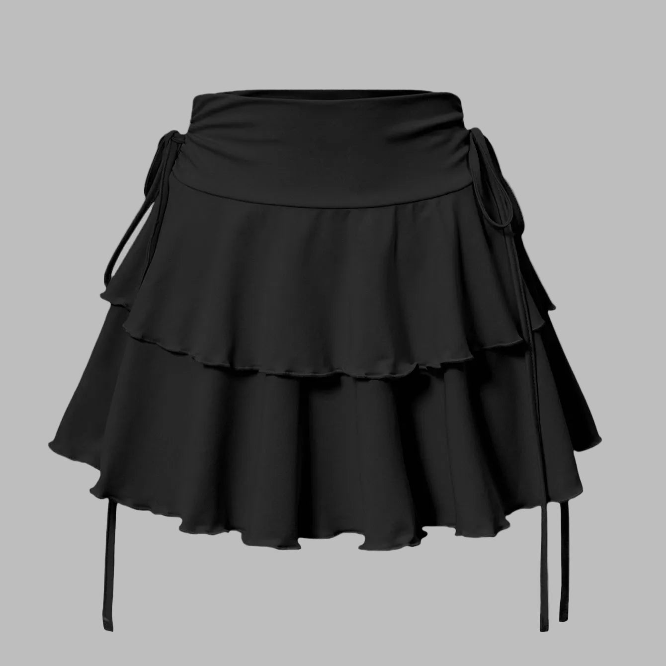 Svart rock punk-kjol med volanger och snörning Visa alternativ
