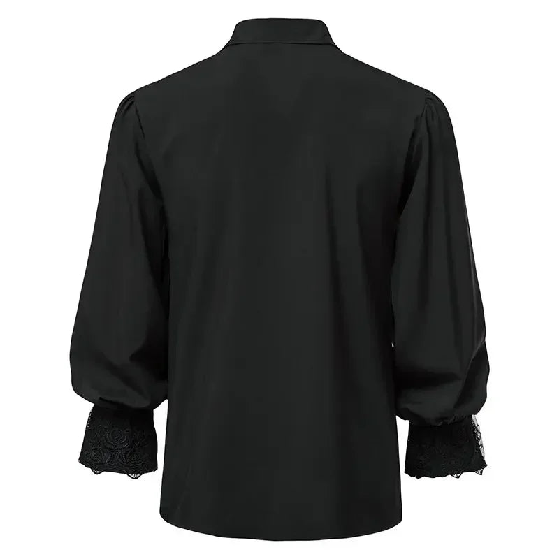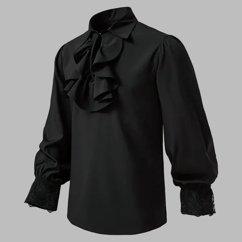 Svart Rockskjorta med Spetsmanschetter och Jabot