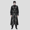 Czarny Płaszcz Steampunk Goth z Brokątowym Wzorem i Paskami