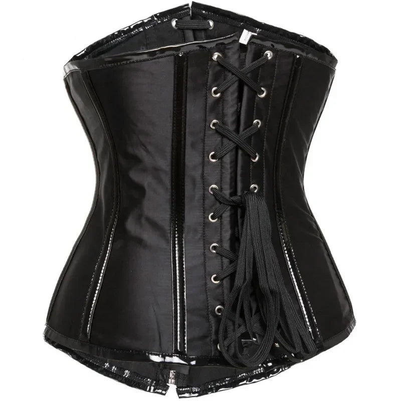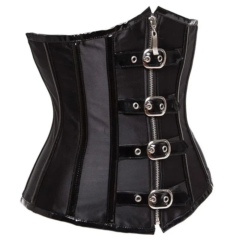 Svart Steampunk Korsett med Metallspännen – Hög Midja
