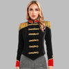 Svart Steampunk Militärjacka med Guldiga Detaljer och Fransar
