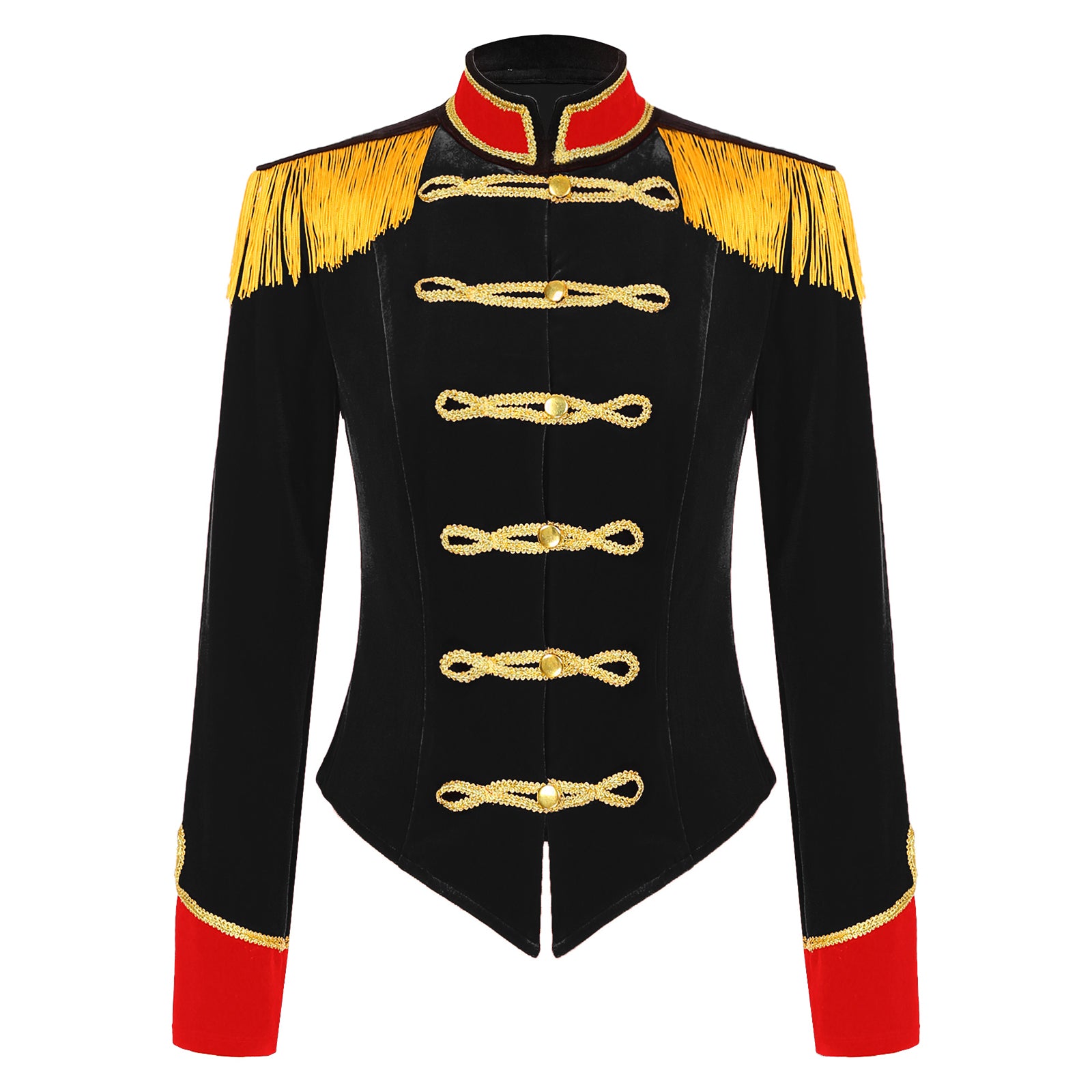 Svart Steampunk Militärjacka med Guldiga Detaljer och Fransar Visa alternativ