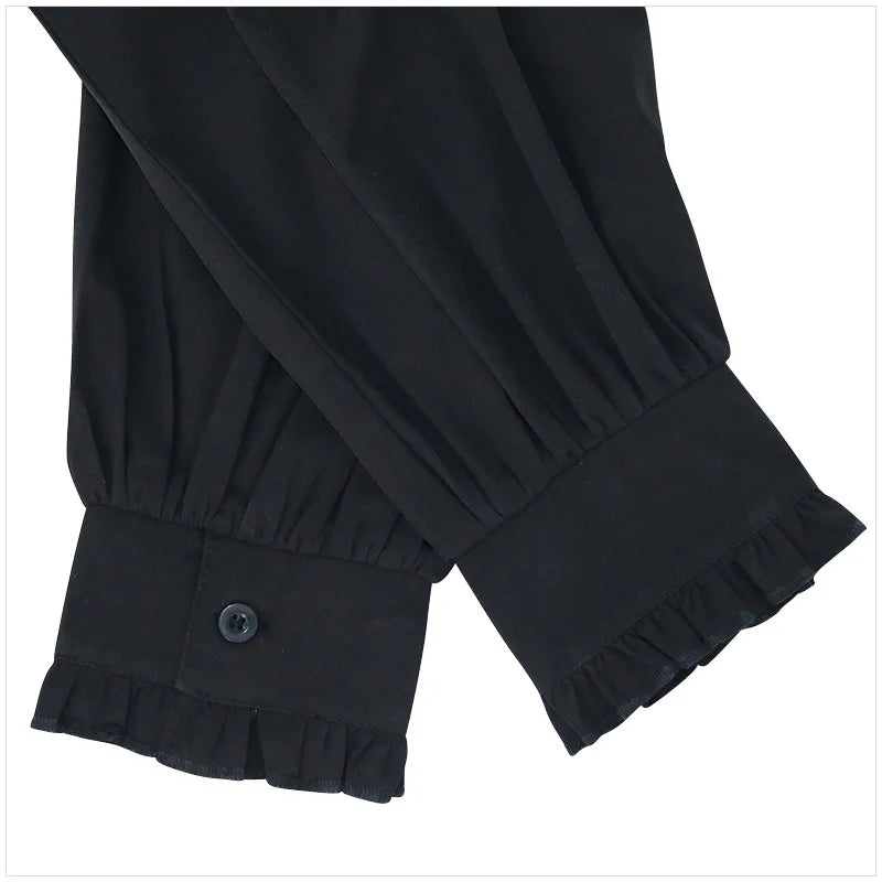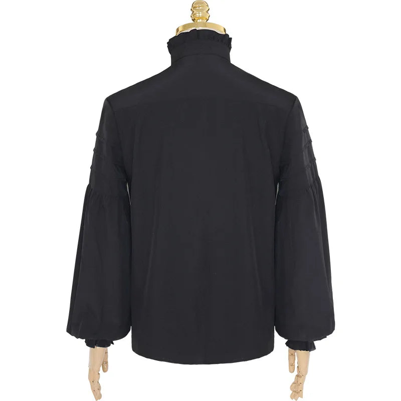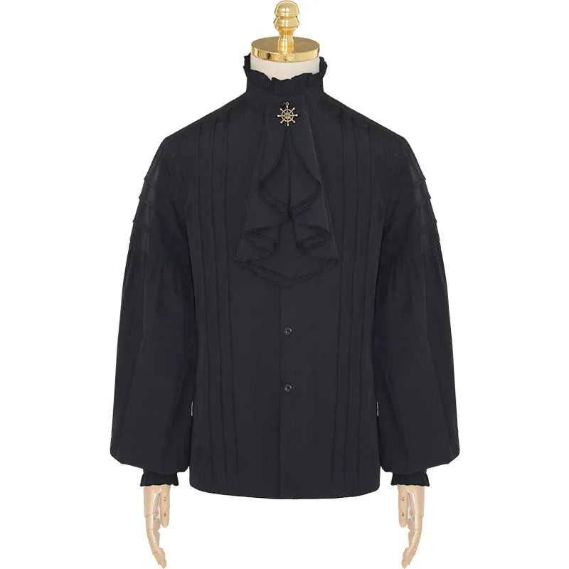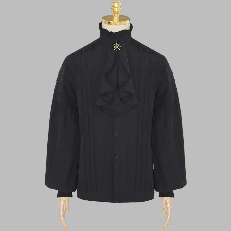 Svart Steampunk-skjorta med Jabot och Gyllene Brosch