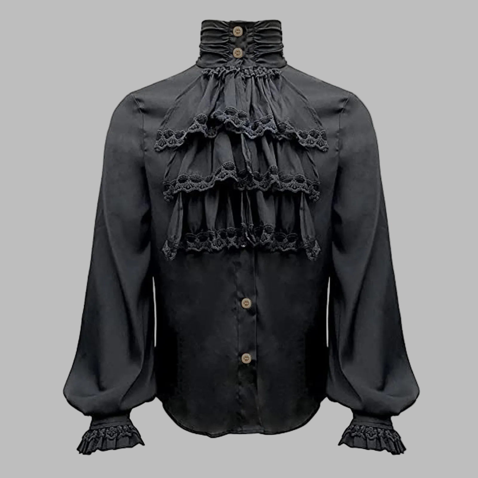 Svart Steampunk-skjorta med Spetsvolanger och Hög Krage Visa alternativ