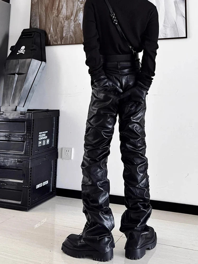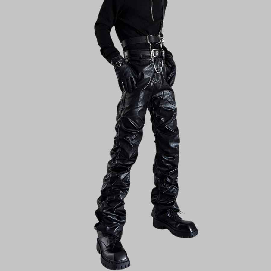 Svarta gotiska byxor i veganskt läder med kedjor och bälte