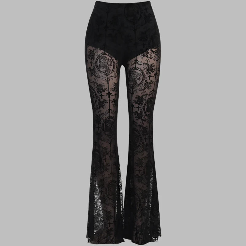 Svarta gotiska byxor med slitsar och spetsdetaljer Visa alternativ