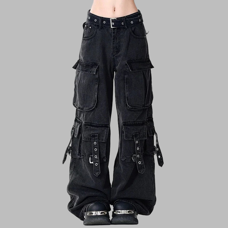 Svarta gotiska cargobyxor med fickor, remmar och spännen