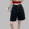 Gothic Svarta Damshorts med Kontrastsömmar Grunge Oversize