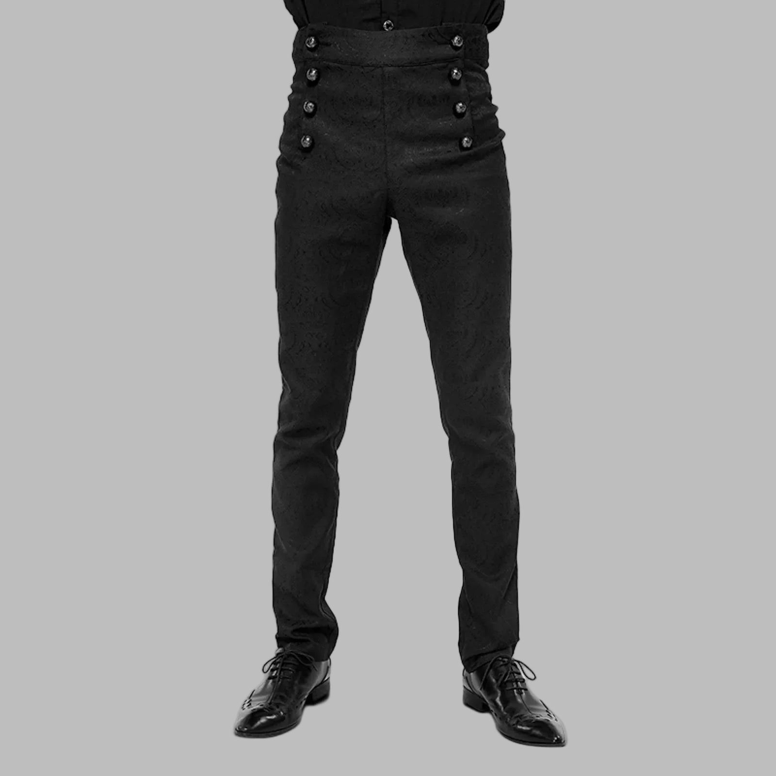 Svarta gotiska herrbyxor med hög midja och knappar, formella