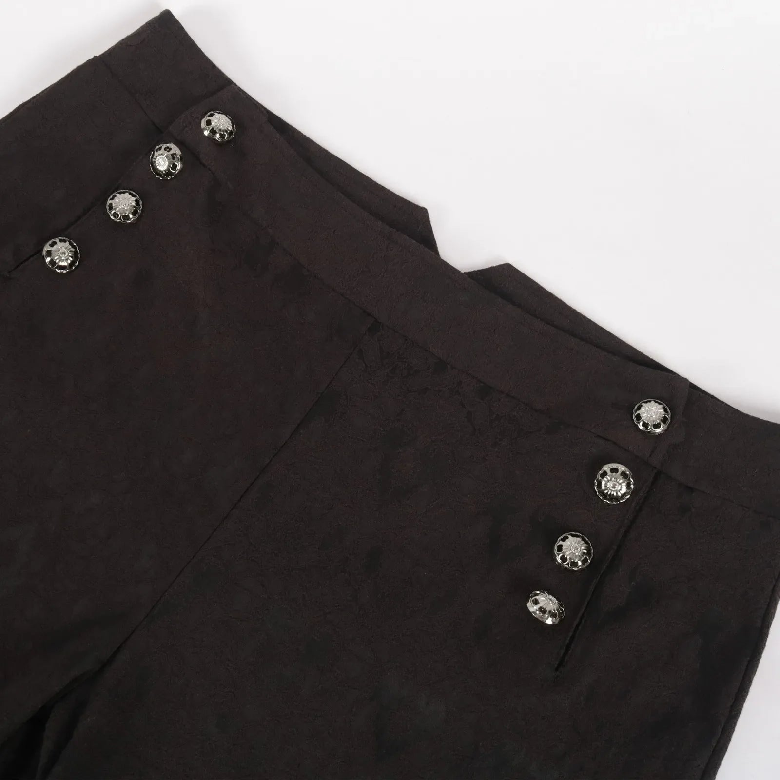 Svarta gotiska herrbyxor med hög midja och knappar för formella tillfällen