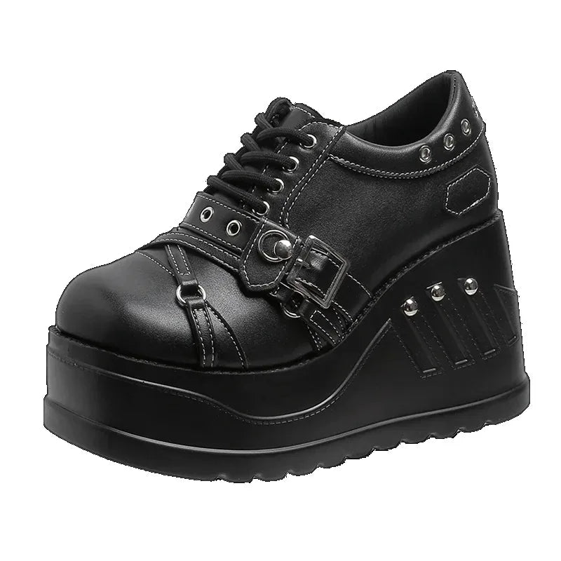 Svarta Punk Rock Skor med Nitar, Spännen och Kraftig Sula