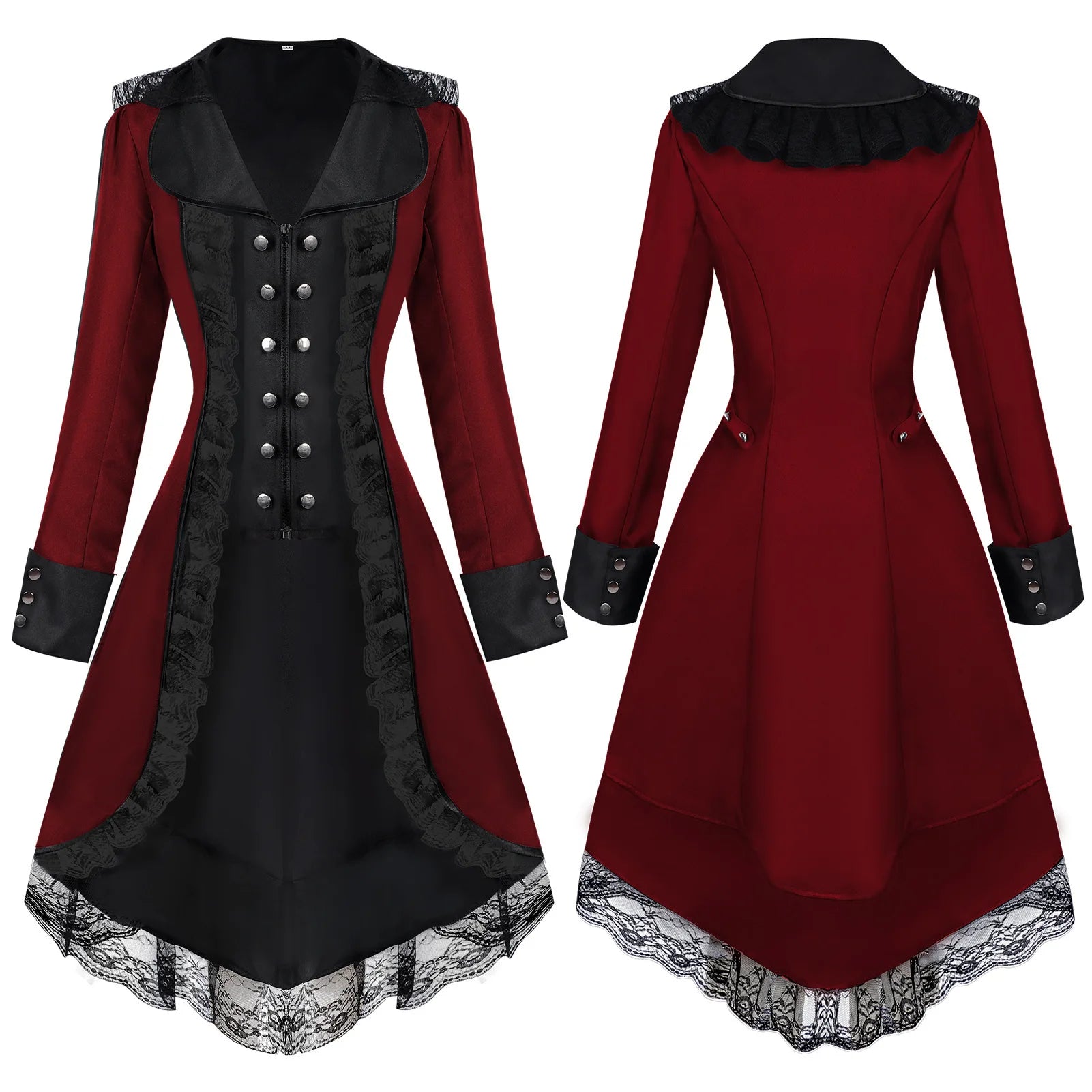 Vinröd Steampunkklänning med Svart Korsett och Spets Visa alternativ