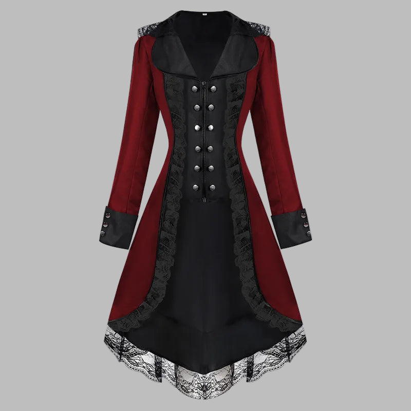 Vinröd Steampunkklänning med Svart Korsett och Spets