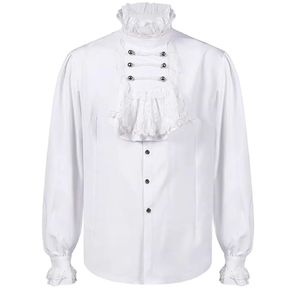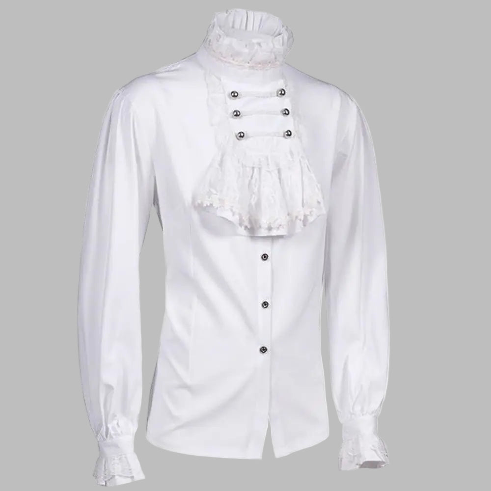 Vit Gotisk Herrskjorta med Spetsjabot