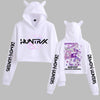 Vit HUNTRX Demon Hunters Jirai Kei Crop Hoodie med Horn