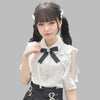 Vit Lolita Blus med Pärlkrage och Svart Rosett Jirai Kei