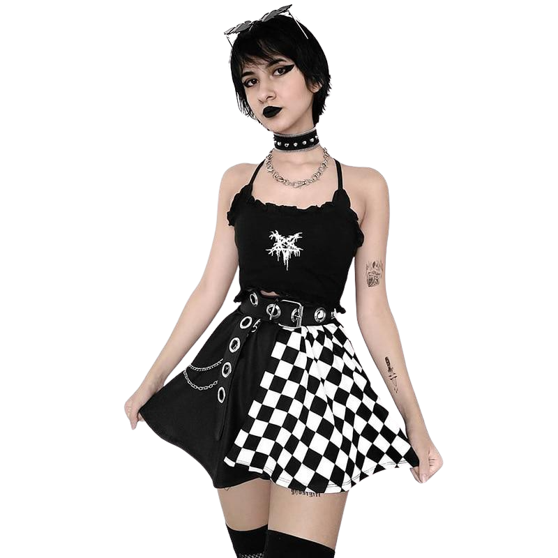 • Gotisk kjol i asymmetrisk stil, bryter modets konventioner