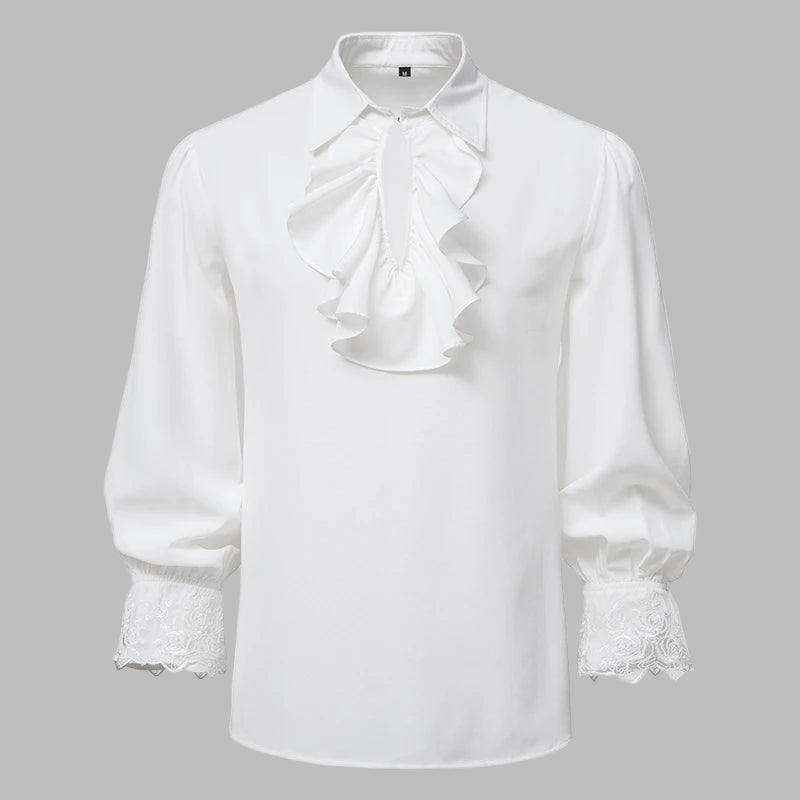 Vit Rockskjorta med Spetsmanschetter och Jabot XXL