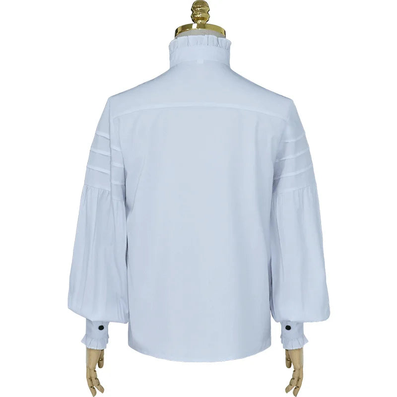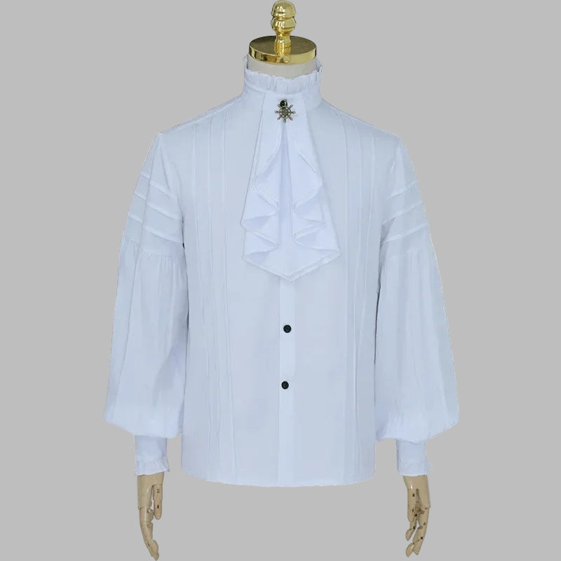 Vit Steampunk-skjorta med Hög Krage och Jabot Visa alternativ