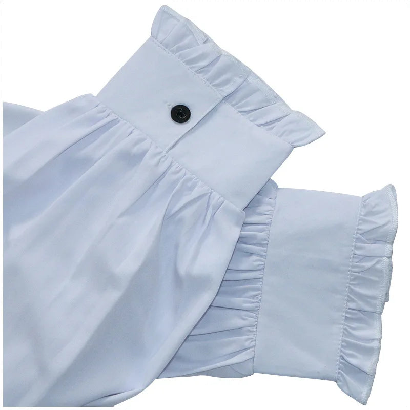 Vit Steampunk-skjorta med Hög Krage och Jabot