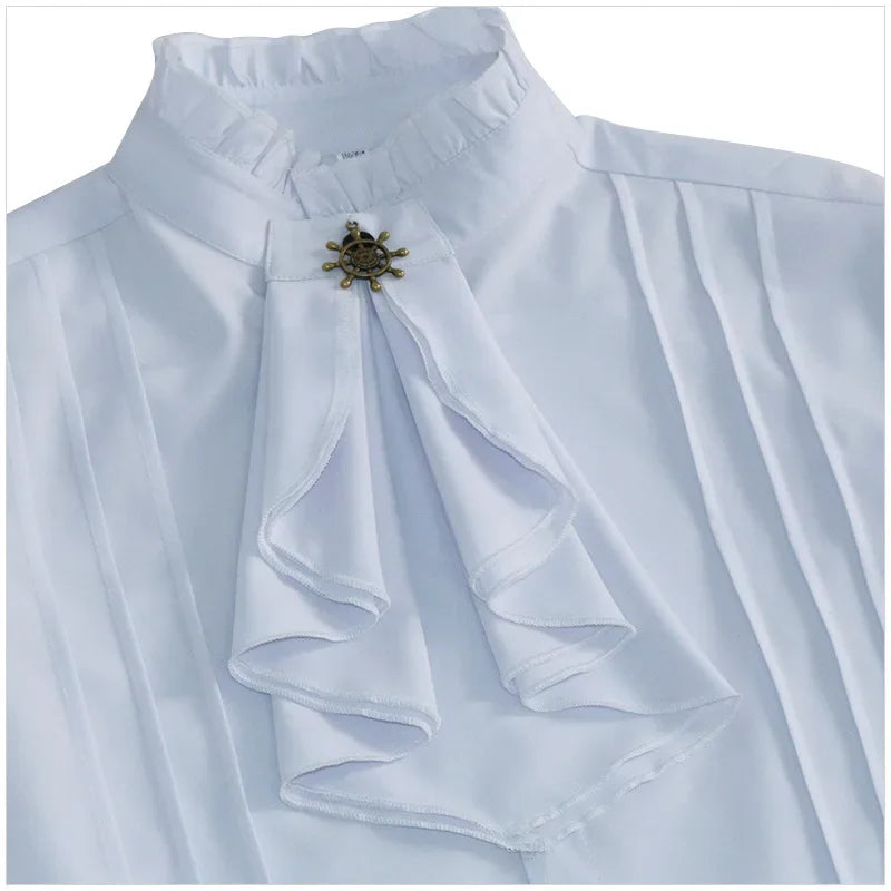 Vit Steampunk-skjorta med Jabots och Puffärmar 4XL