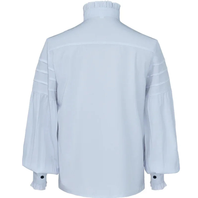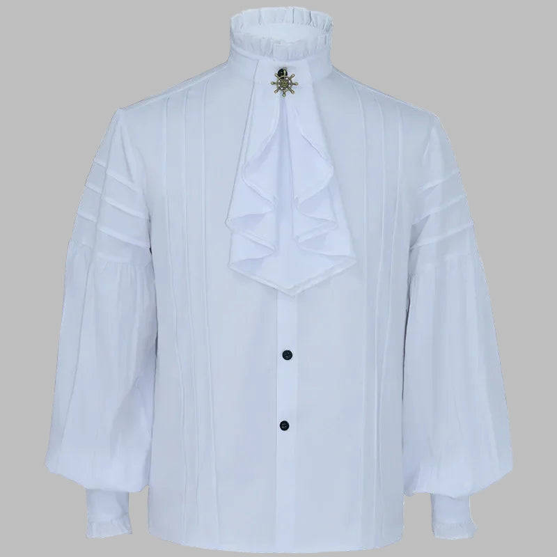 Vit skjorta i steampunkstil med jabot och puffärmar