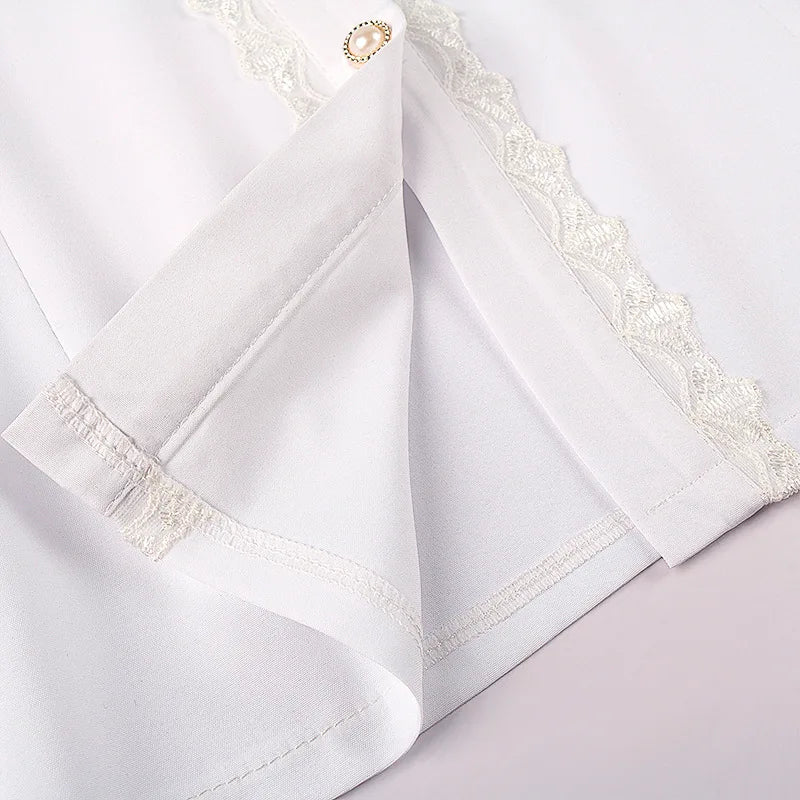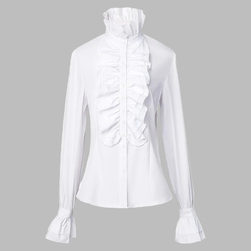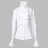 Vit Steampunkblus med Jabots och Puffärmar XXL