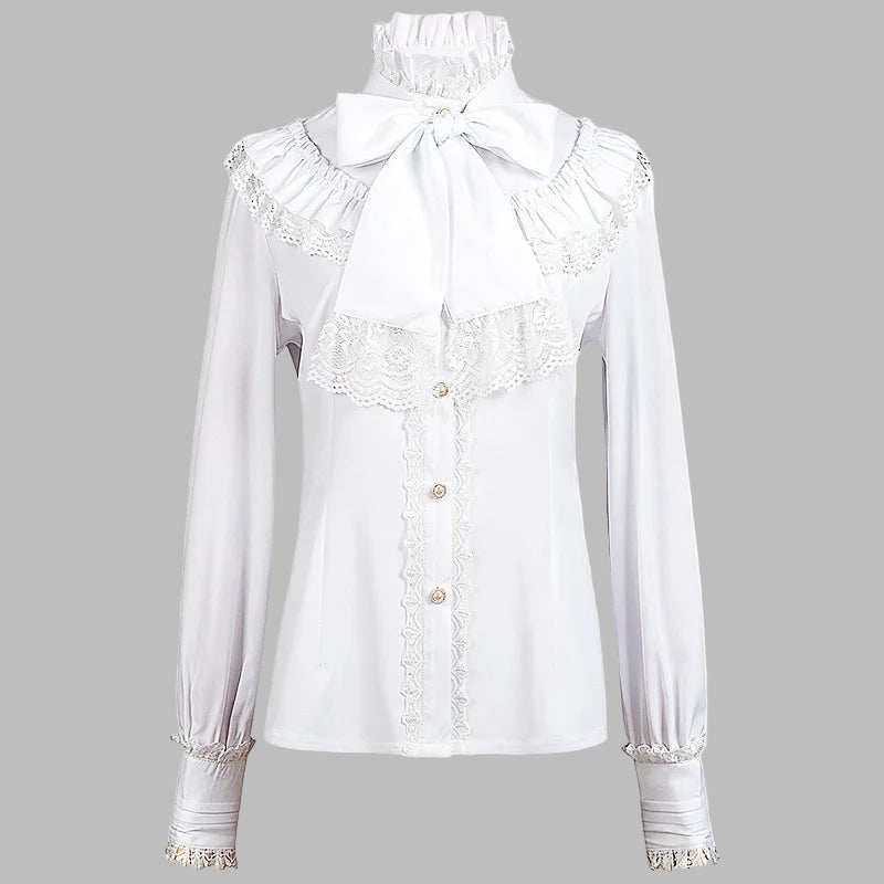 Vit Steampunkblus med Spetsapplikation och Rosett