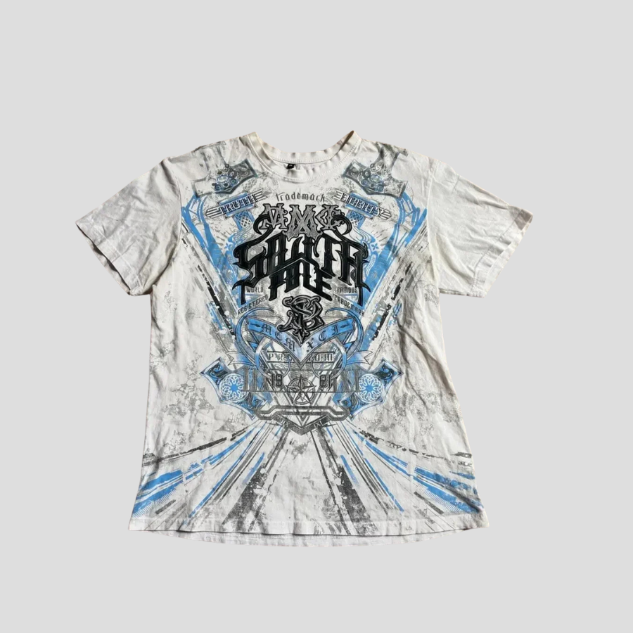 Vit T-shirt med Blått Mönster och South Pole-tryck 3XL